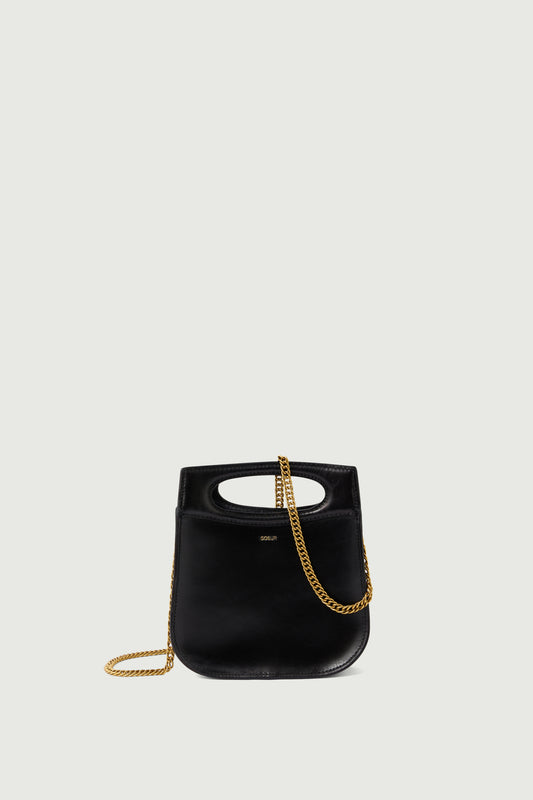 A bag crafted in a single large piece of leather, a silk square available in a palette of colors, an iconic jacket in Harris Tweed, and a range of long socks in mercerized cotton thread.
