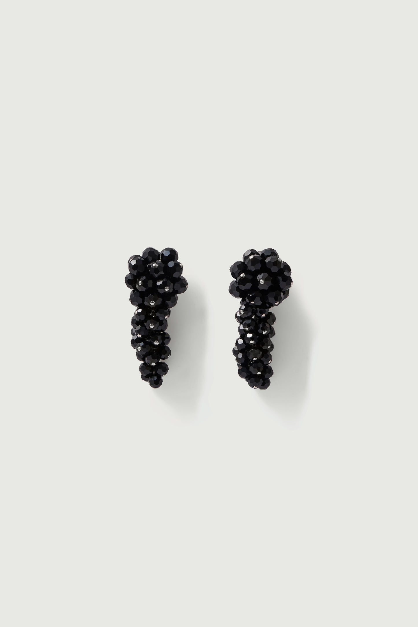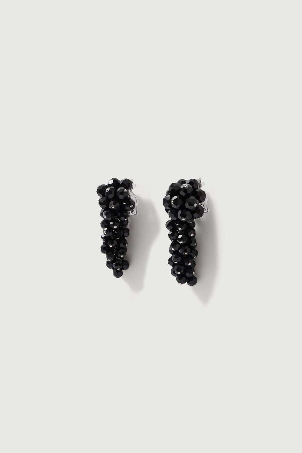 DOROTHY is a pair of clip fastening earrings. Reminiscent of a cluster idea it is made from black faceted glass beads.