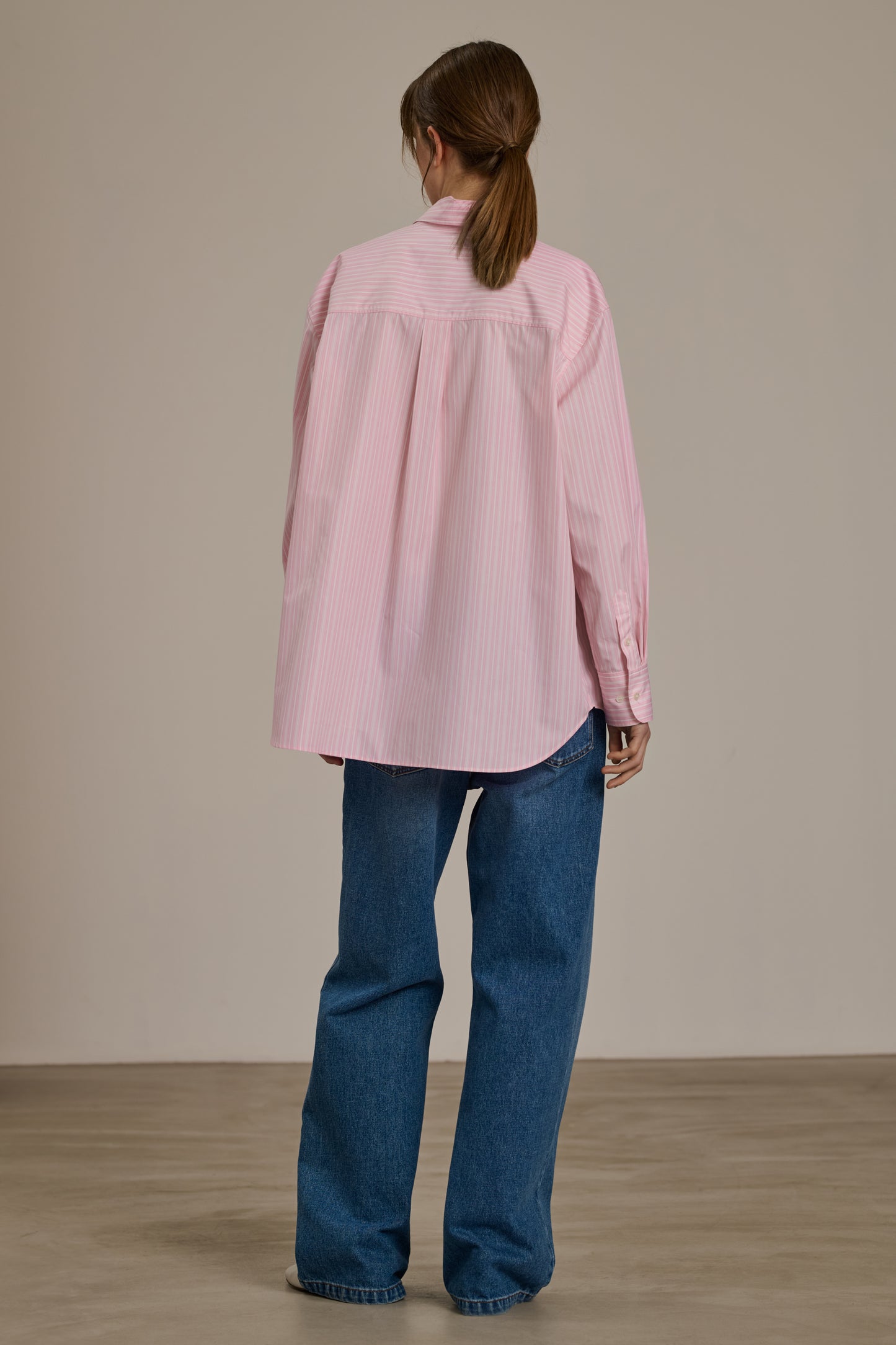 CARLOTTA is a striped poplin shirt designed with an oversized fit inspired by men's wardrobes, for a relaxed yet elegant style.