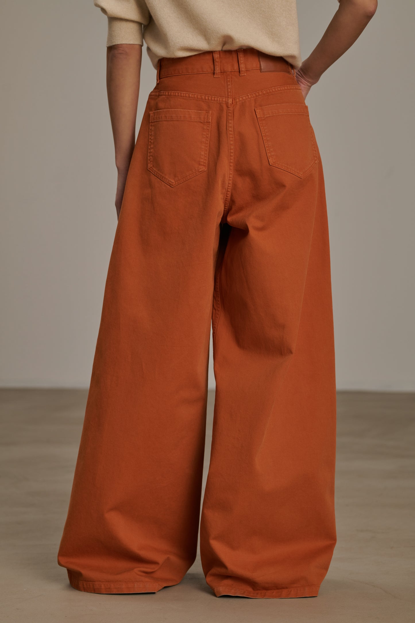 ALEXIS is a thick canvas trouser with a wide, flared fit. It has a relaxed style. It follows the line of Sœur's signature looks, where oversized is expertly crafted.
